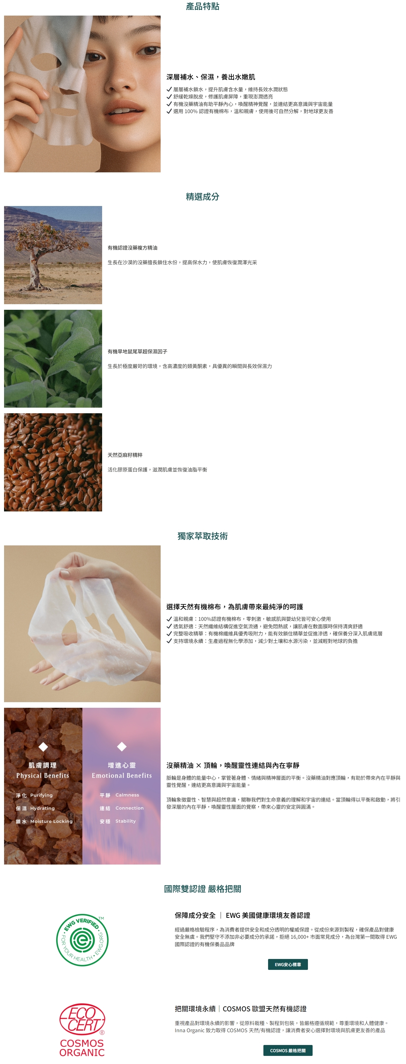 新版沒藥水潤精油面膜採用有機棉製成,溫和親膚,能讓肌膚更有效吸收,並提供強效保濕。