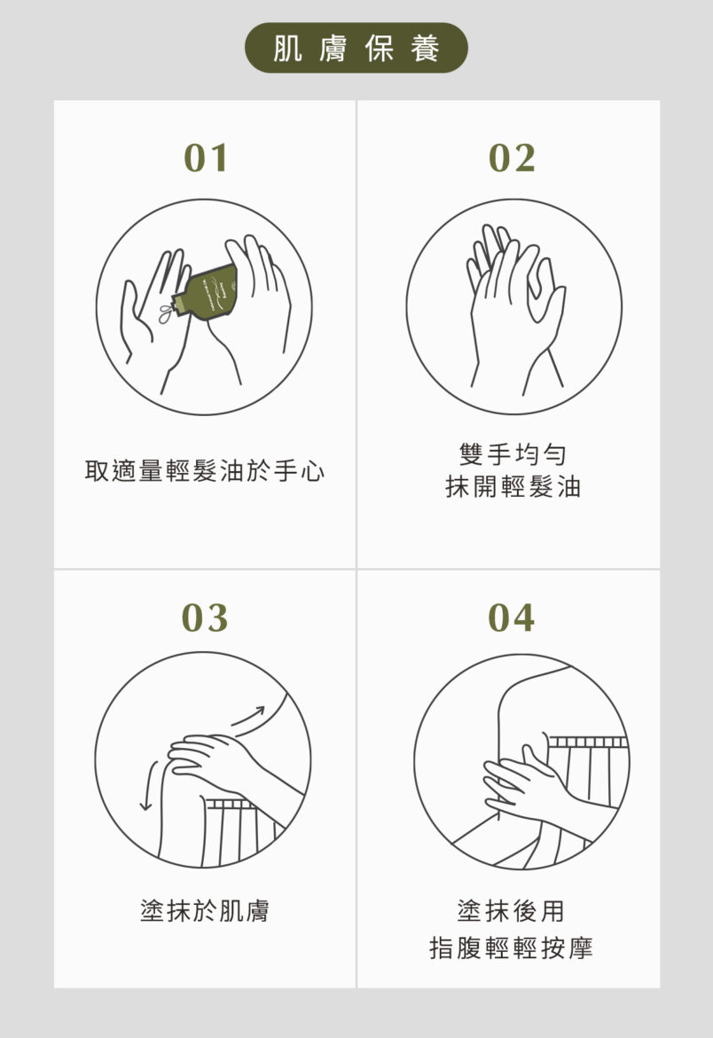 輕髮油,選用與臉部精華油同等級的天然有機油脂,不需要添加矽靈、合成酯類、人工香精,依然可以打造輕、薄、透的質地,顛覆你對有機髮油的厚重印象。溫和呵護頭髮毛麟片,重現秀髮美麗光澤。