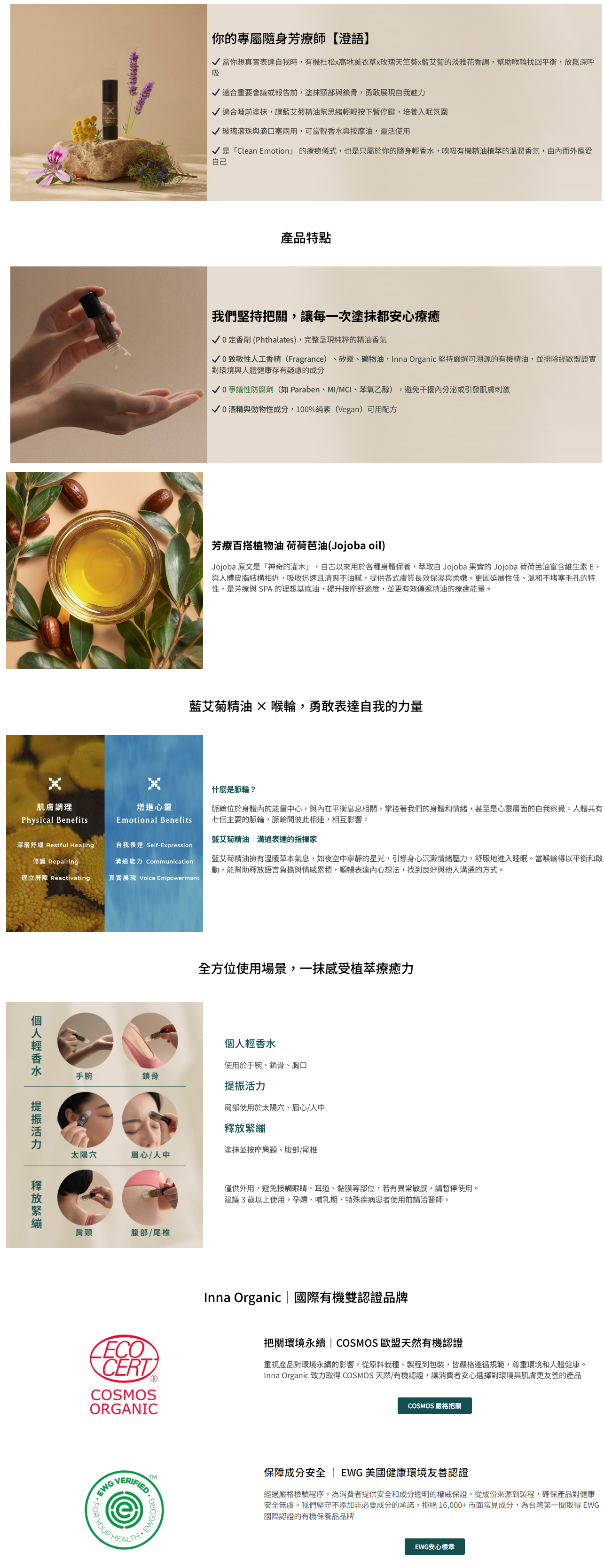 從 Clean Beauty 到 Clean Emotion 的保養儀式,Inna Organic 相信美不只在肌膚,更始於心。全新推出的【悅流】脈輪精油滾珠瓶,是隨身按摩油,也是屬於你的隨身輕香水。