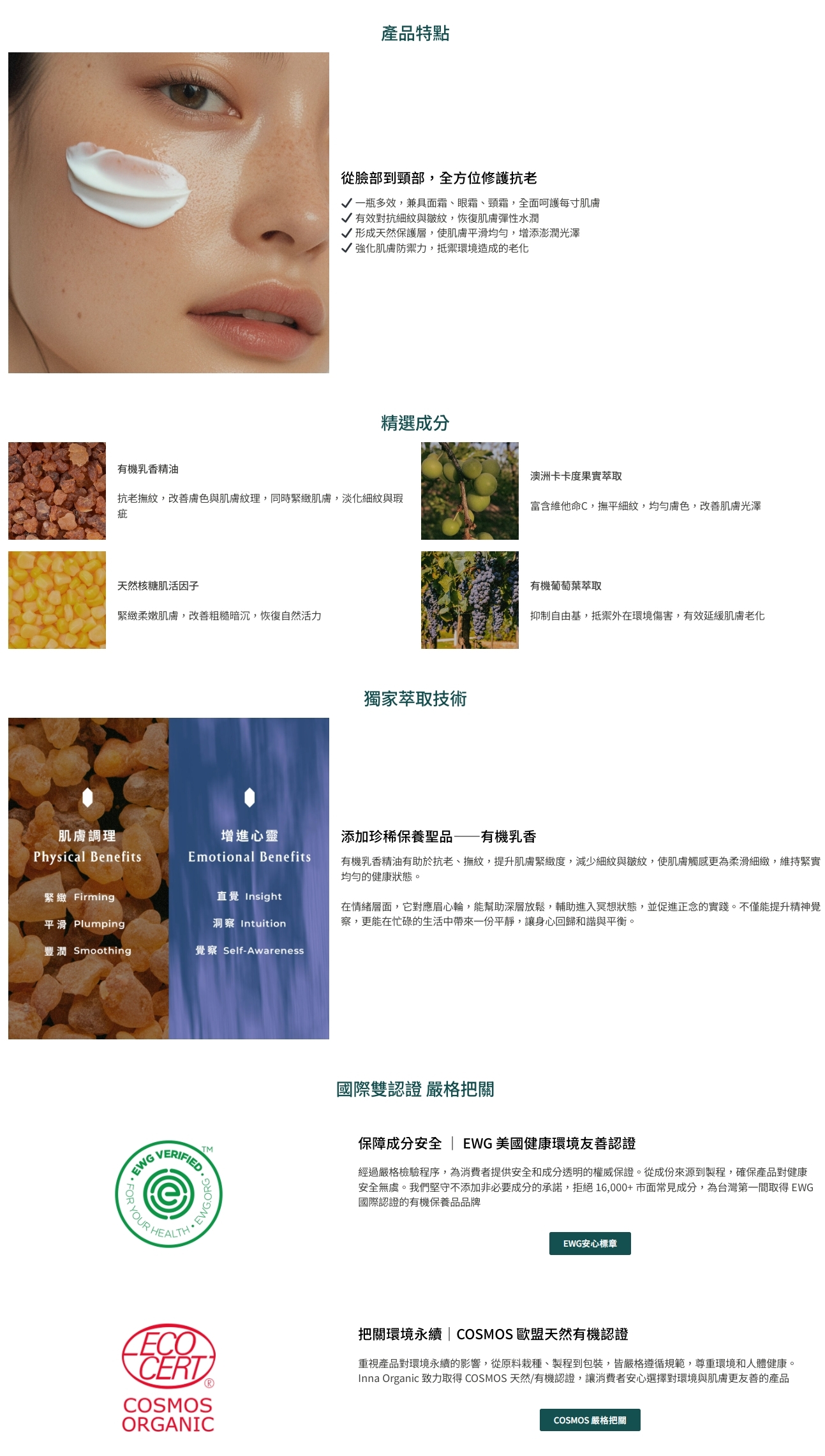 撫平皺紋、緊緻肌膚 – 日夜溫和地對抗衰老,提供每日所需的滋潤及保護 。 有機認證的抗衰老保濕霜,專為整個臉部設計,包括眼部周圍的嬌嫩肌膚。