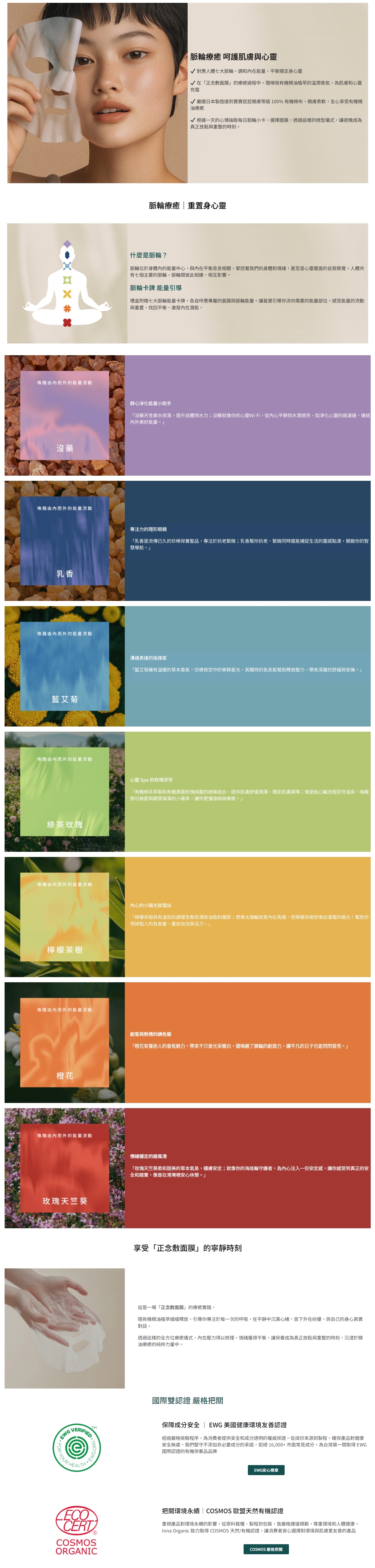 在接觸肌膚的同時,隨有機精油植萃緩緩釋放,引導你專注於每一次的呼吸,與自己的身心真實對話。在這場「正念敷面膜」的療癒實踐中 ,讓純粹保養與身心靈達到平衡。